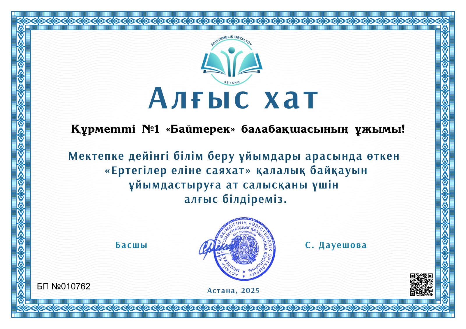 ГККП Ясли-сад № 1 «Бәйтерек»